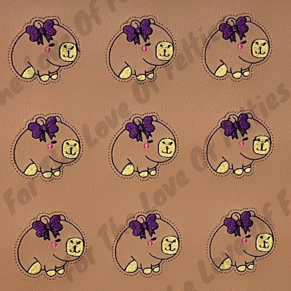 Felties are embroidered on a high quality vinyl and backed with Olyfun. Feltie is approximately 2 inches. Felties can be used to embellish bows, badge reels, clips and scrapbooking.