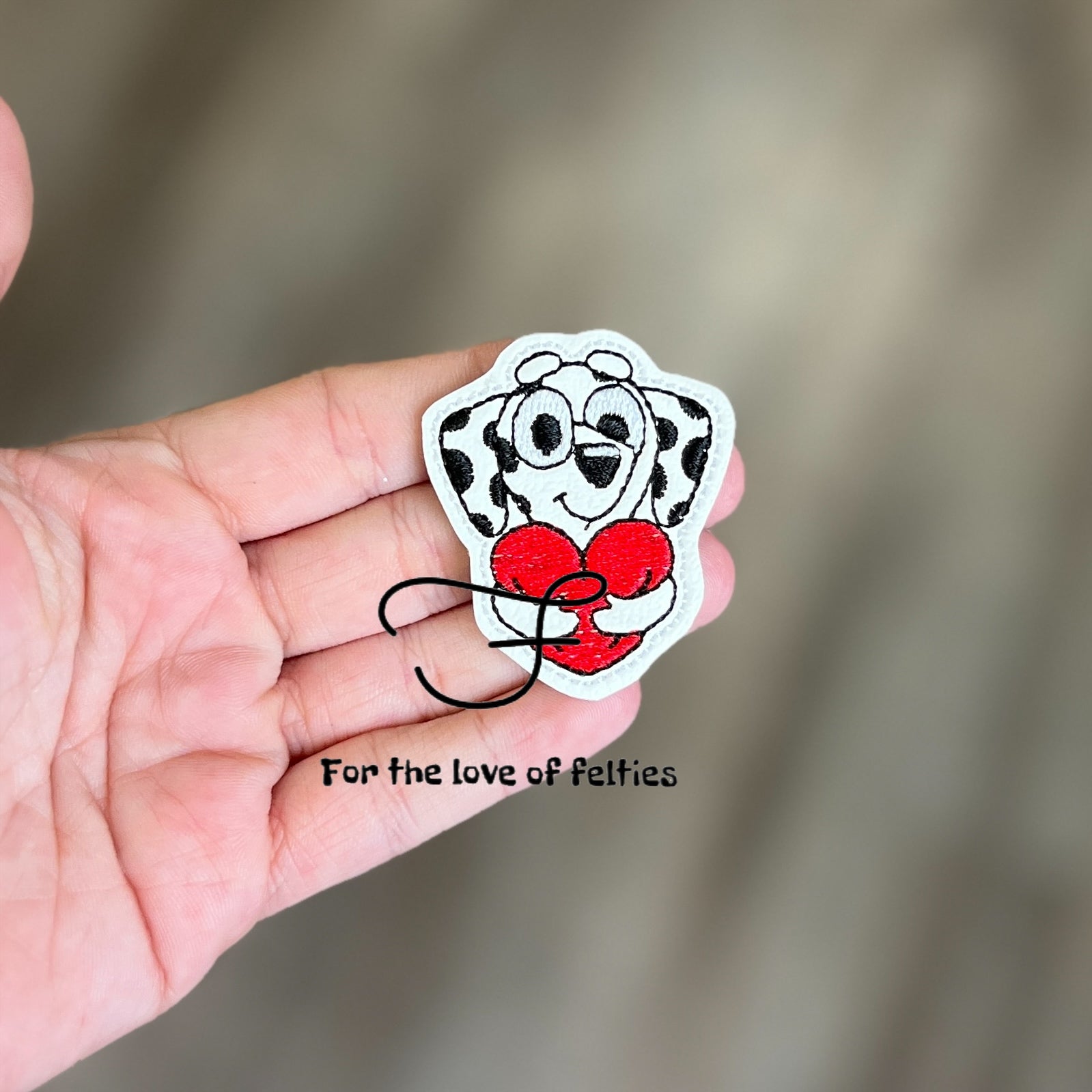 Felties are embroidered on a high quality vinyl and backed with Olyfun. Feltie is approximately 2 inches. Felties can be used to embellish bows, badge reels, clips and scrapbooking.