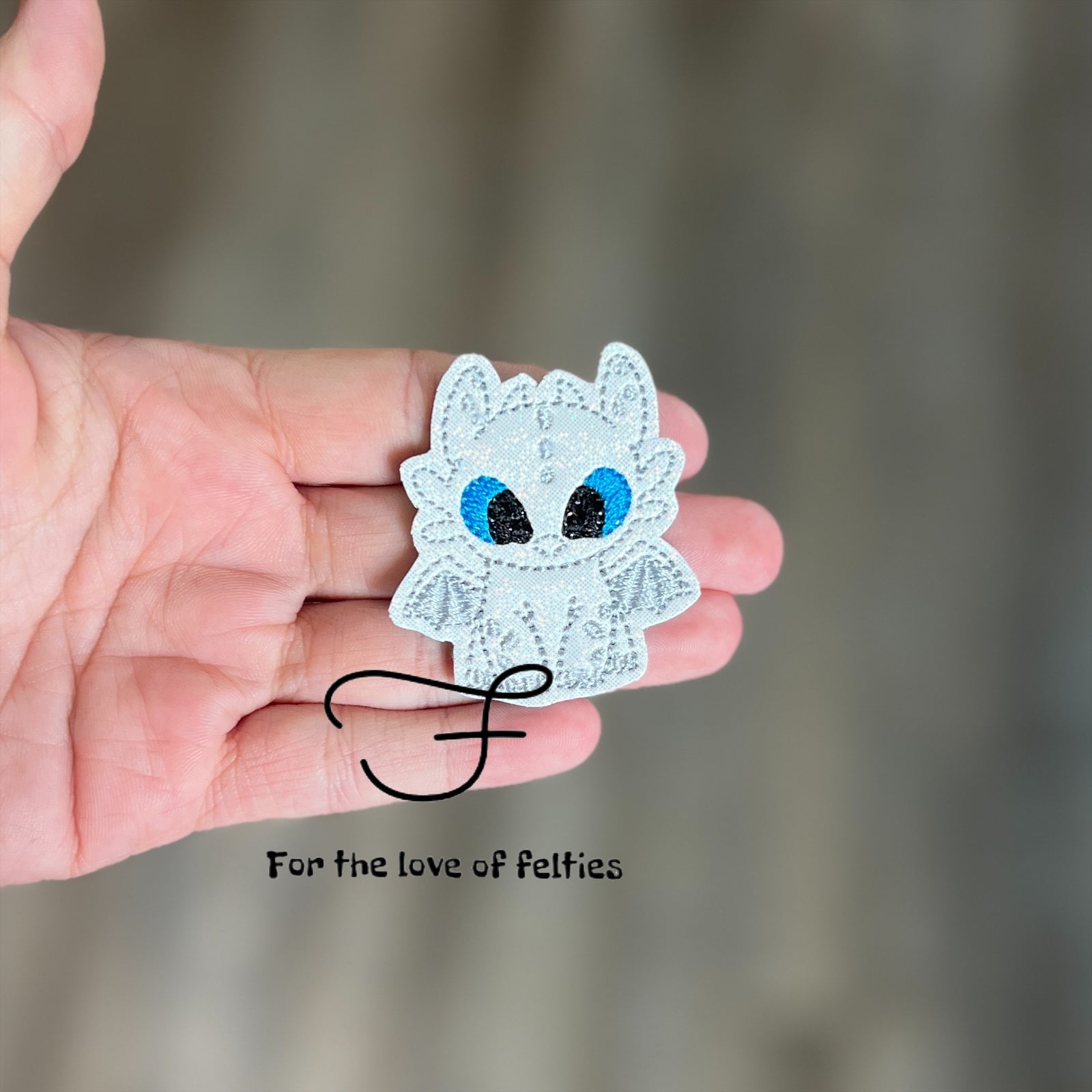 Felties are embroidered on a high-quality vinyl and backed with Olyfun. Feltie is approximately 2 inches. Felties can be used to embellish bows, badge reels, clips and scrapbooking.