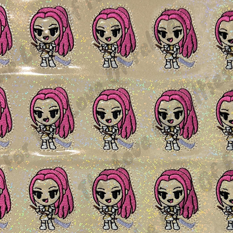 Felties are embroidered on a high quality vinyl and backed with Olyfun. Feltie is approximately 2 inches. Felties can be used to embellish bows, badge reels, clips and scrapbooking.
