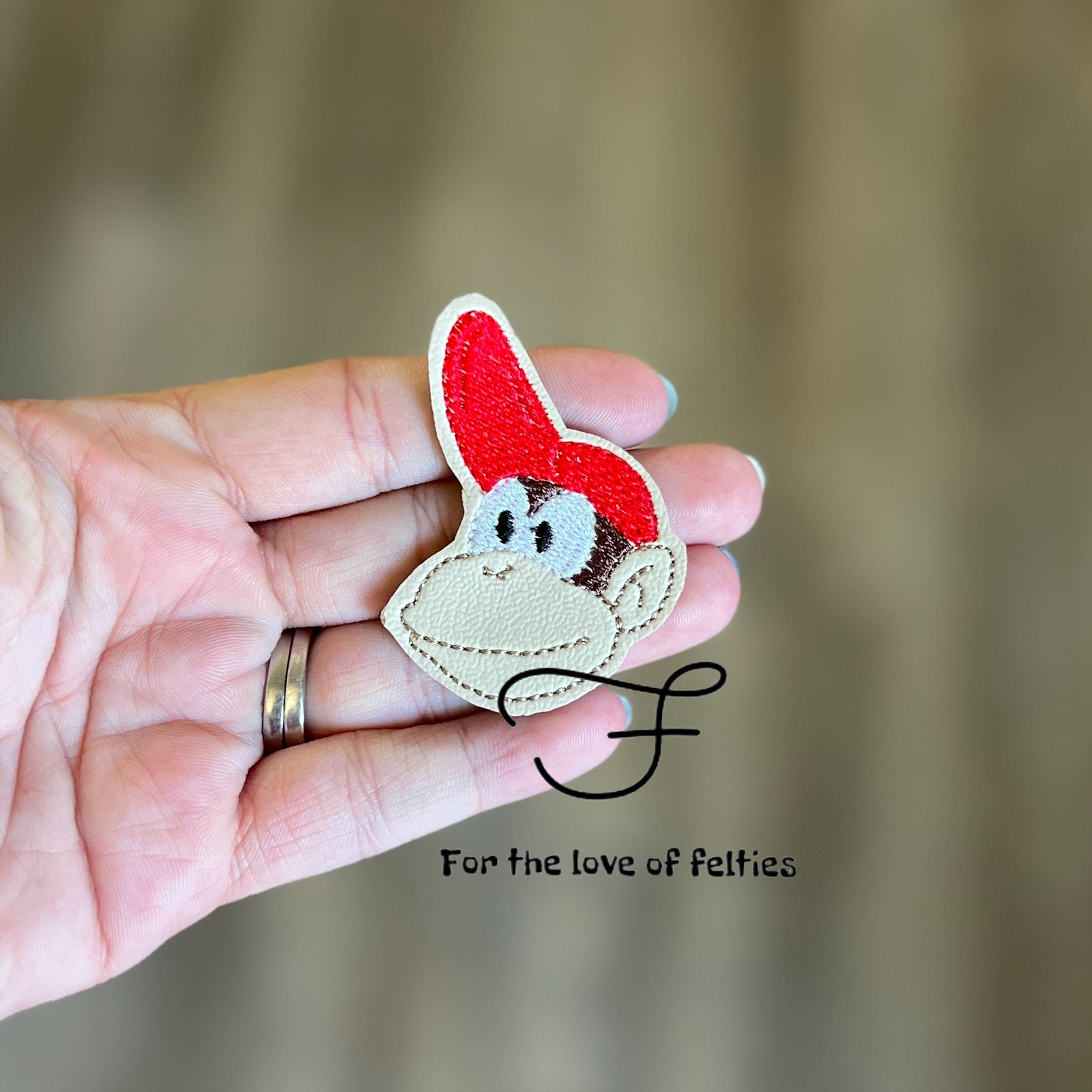 Felties are embroidered on a high-quality vinyl and backed with Olyfun. Feltie is approximately 2 inches. Felties can be used to embellish bows, badge reels, clips and scrapbooking.