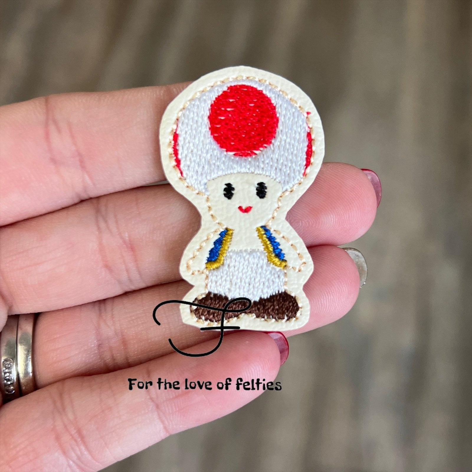 Felties are embroidered on a high-quality vinyl and backed with Olyfun. Feltie is approximately 2 inches. Felties can be used to embellish bows, badge reels, clips and scrapbooking.