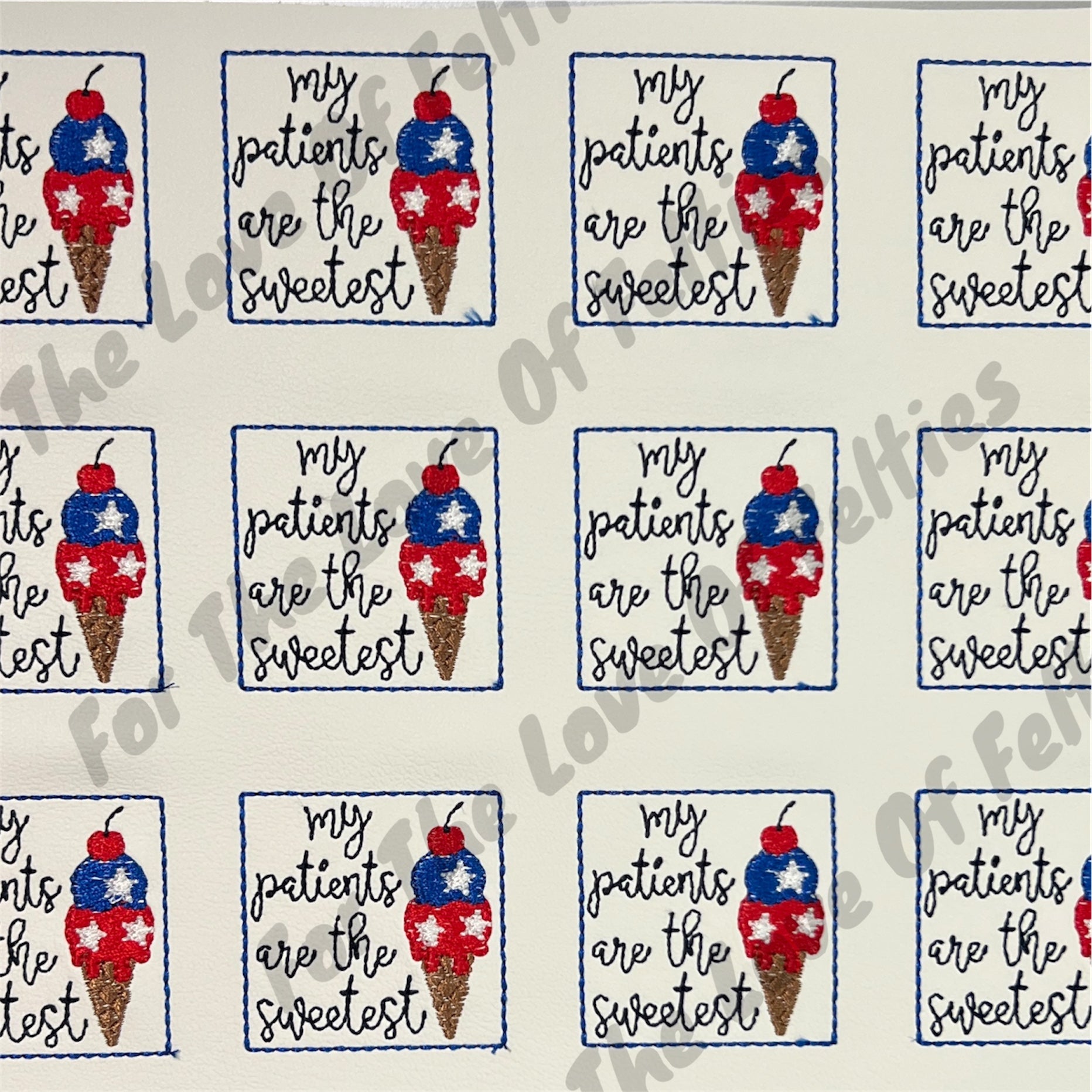 Felties are embroidered on a high quality vinyl and backed with Olyfun. Feltie is approximately 2 inches. Felties can be used to embellish bows, badge reels, clips and scrapbooking.
