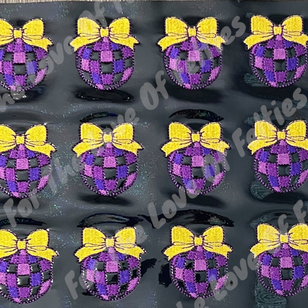 Felties are embroidered on a high quality vinyl and backed with Olyfun. Feltie is approximately 2 inches. Felties can be used to embellish bows, badge reels, clips and scrapbooking.