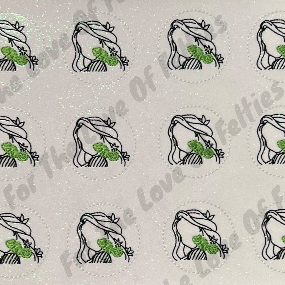 Felties are embroidered on a high quality vinyl and backed with Olyfun. Feltie is approximately 2 inches. Felties can be used to embellish bows, badge reels, clips and scrapbooking.
