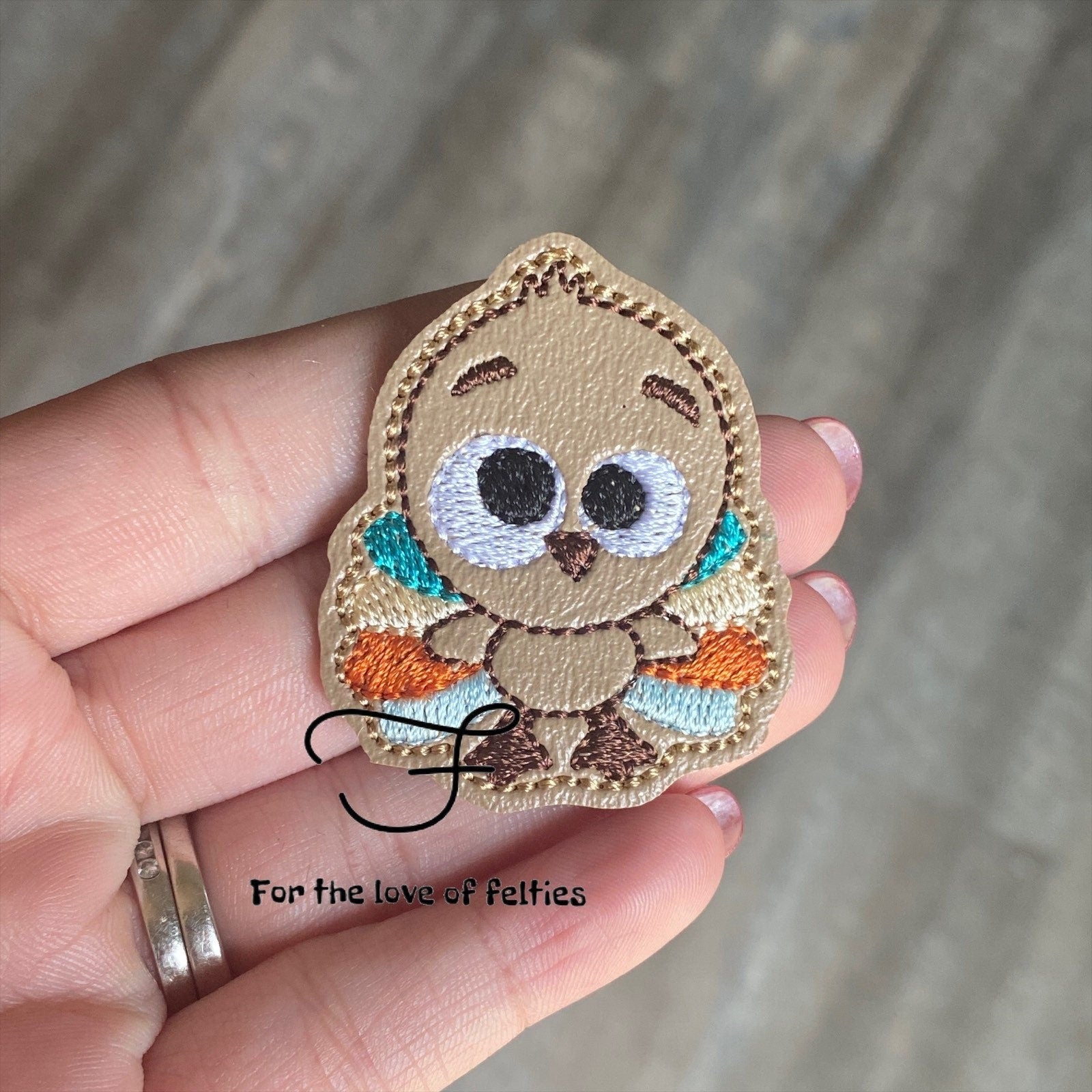 Felties are embroidered on a high quality vinyl and backed with Olyfun. Feltie is approximately 2 inches. Felties can be used to embellish bows, badge reels, clips and scrapbooking.