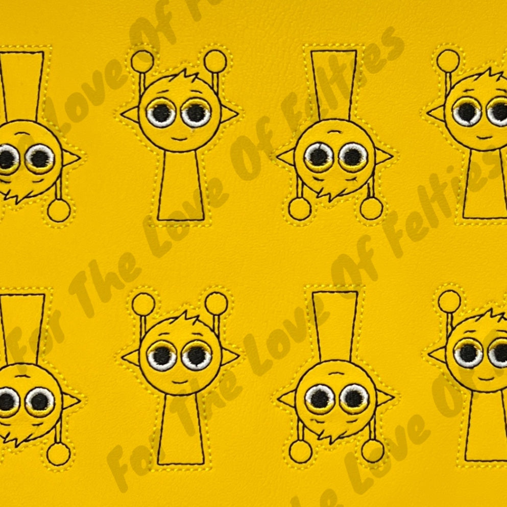 Felties are embroidered on a high quality vinyl and backed with Olyfun. Feltie is approximately 2.25-2.5 inches tall. Felties can be used to embellish bows, badge reels, clips and scrapbooking.