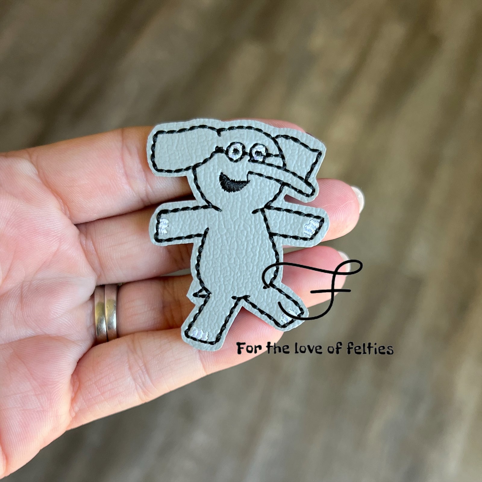 Felties are embroidered on a high-quality vinyl and backed with Olyfun. Feltie is approximately 2 inches. Felties can be used to embellish bows, badge reels, clips and scrapbooking.