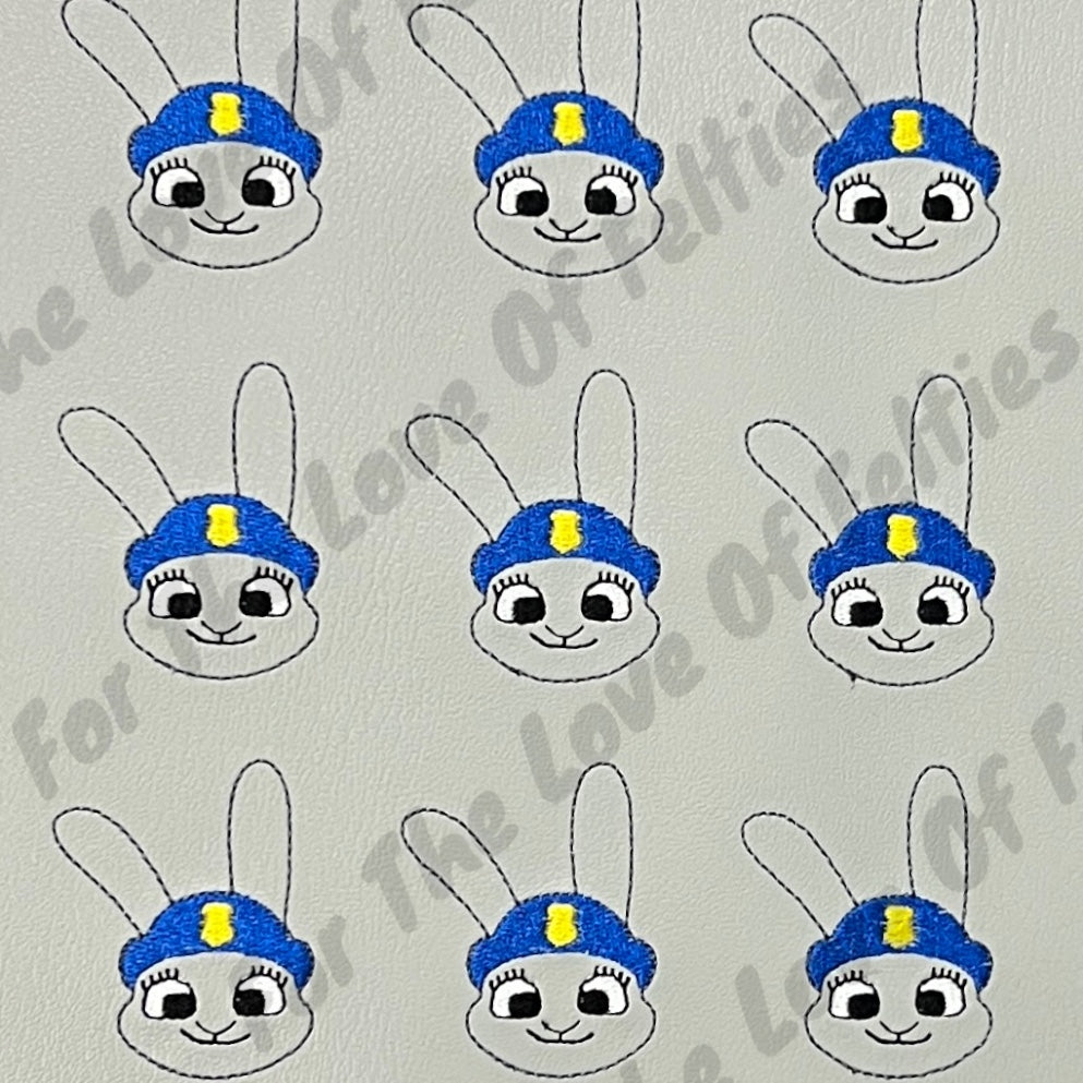 Felties are embroidered on a high quality vinyl and backed with Olyfun. Feltie is approximately 2 inches. Felties can be used to embellish bows, badge reels, clips and scrapbooking.